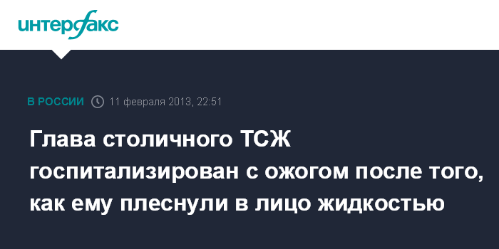 Глава столичного ТСЖ госпитализирован с ожогом после того, как ему плеснули в лицо жидкостью