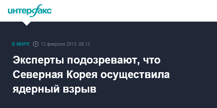 Пекин. 12 февраля. INTERFAX.RU - Китайские сейсмологи выступили с заявлением, что землетрясение, которое было зафиксировано на севере КНДР во вторник утром, на деле могло быть ядерным взрывом.