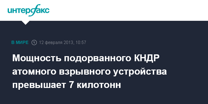 Комментируя опубликованные южнокорейские оценки мощности взрыва, согласно которым она составила 6 - 7 килотонн, собеседник агентства заметил: "Больше".