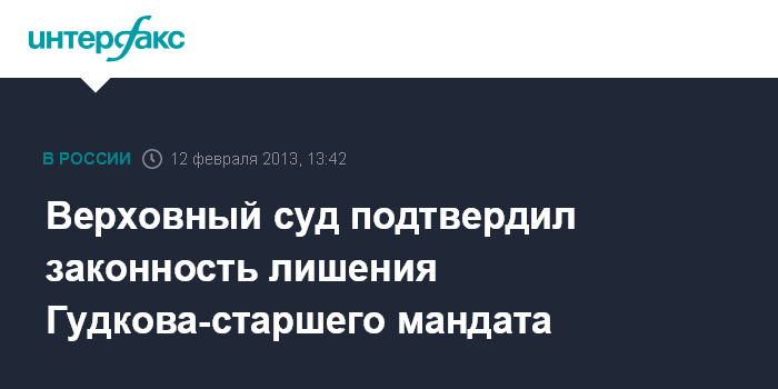 Москва. 12 февраля. INTERFAX.RU - Верховный суд России во вторник признал законным постановление Госдумы о досрочном прекращении полномочий депутата от партии "Справедливая Россия" Геннадия Гудкова.