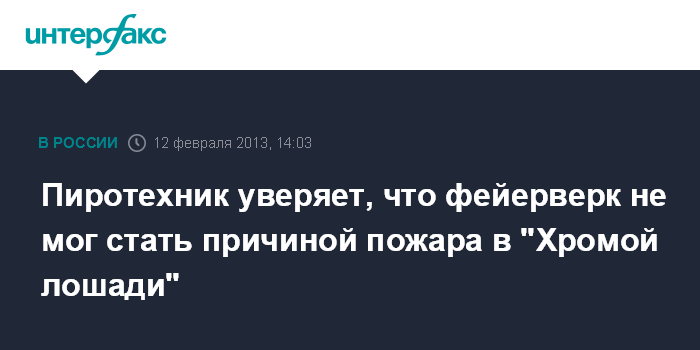 Пиротехник уверяет, что фейерверк не мог стать причиной пожара в "Хромой лошади"
