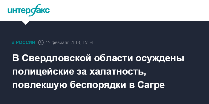 В Свердловской области осуждены полицейские за халатность, повлекшую беспорядки в Сагре