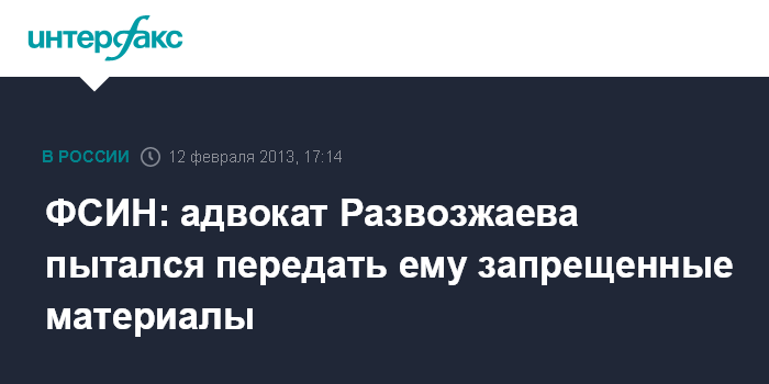 ФСИН: адвокат Развозжаева пытался передать ему запрещенные материалы