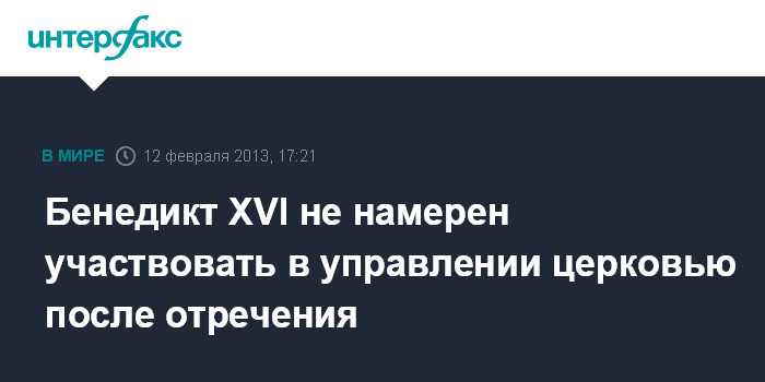 Бенедикт XVI не намерен участвовать в управлении церковью после отречения