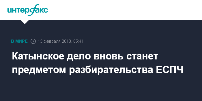 Москва. 13 февраля. ИНТЕРФАКС - Россия не представит новых аргументов относительно расследования "катынского дела" на слушаниях в Европейском суде по правам человека (ЕСПЧ) в среду, сообщили в пресс-службе Минюста России.