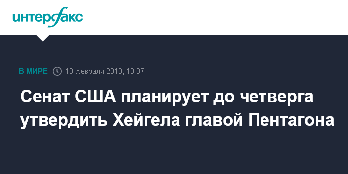 Вашингтон. 13 февраля. INTERFAX.RU - В американском сенате планируют в среду или четверг проголосовать по вопросу об утверждении Чака Хейгела на посту главы Пентагона, сообщают местные СМИ.