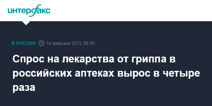 Москва. 14 февраля. INTERFAX.RU - В несколько раз возрос с начала месяца спрос россиян на антигриппозные препараты.
