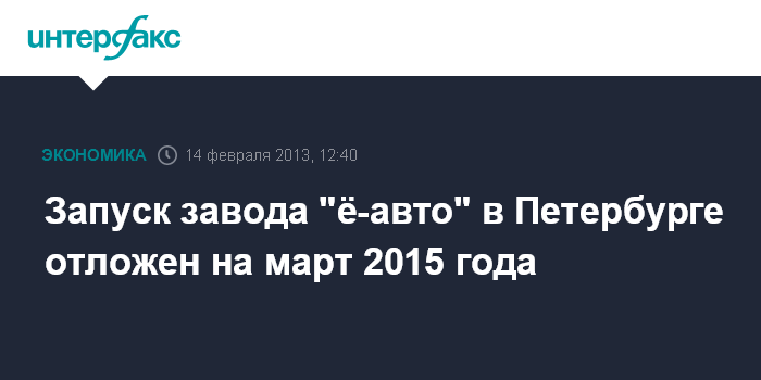 Запуск завода "ё-авто" в Петербурге отложен на март 2015 года