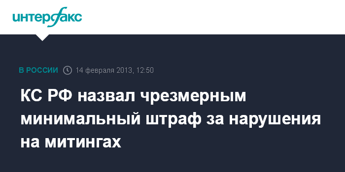 Санкт-Петербург. 14 февраля. INTERFAX.RU - Конституционный суд счел, что минимальный размер штрафа за нарушения на митингах для их участников и организаторов чрезмерен.