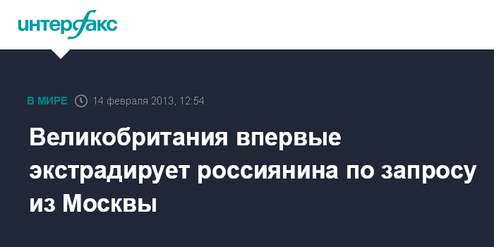 Москва. 14 февраля. INTERFAX.RU - Лондон впервые выдаст России гражданина РФ, пытавшегося найти убежище в Великобритании.
