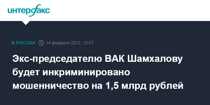 Экс-председателю ВАК Шамхалову будет инкриминировано мошенничество на 1,5 млрд рублей