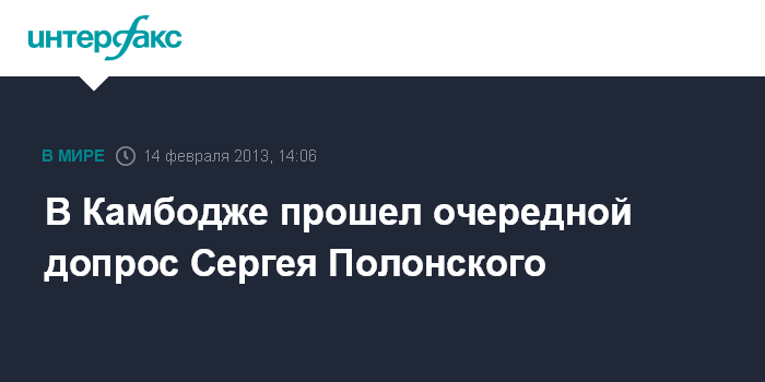 Пномпень. 14 февраля. INTERFAX.RU - Российский бизнесмен Сергей Полонский вернулся в тюремную камеру после допроса, заявил "Интерфаксу" адвокат россиянина Салюкс Лонг в четверг.