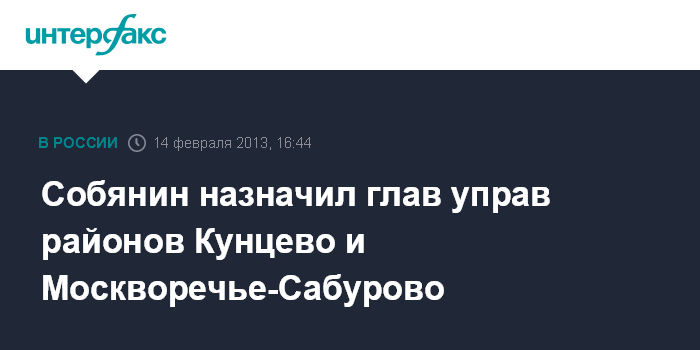 Собянин назначил глав управ районов Кунцево и Москворечье-Сабурово