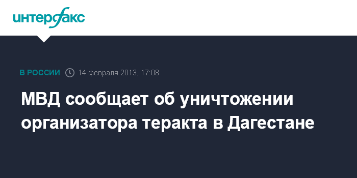 МВД сообщает об уничтожении организатора теракта в Дагестане