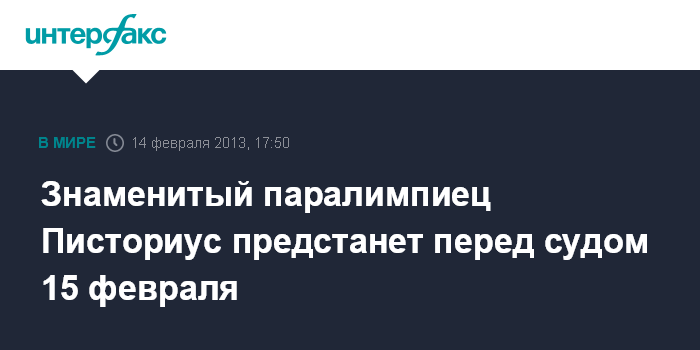Знаменитый паралимпиец Писториус предстанет перед судом 15 февраля