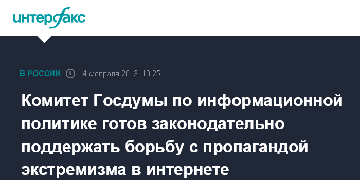 Москва. 14 февраля. INTERFAX.RU - В комитете Госдумы по информационной политике поддерживают инициативу президента РФ о блокировании попыток экстремистов использовать интернет для пропаганды.