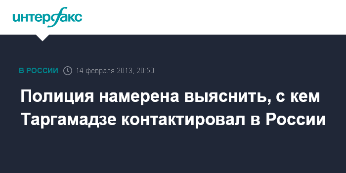 Москва. 14 февраля. INTERFAX.RU - Столичные полицейские, приступившие к розыску Гиви Таргамадзе, планируют установить все его контакты в России, сообщили "Интерфаксу" в пресс-службе московской полиции.