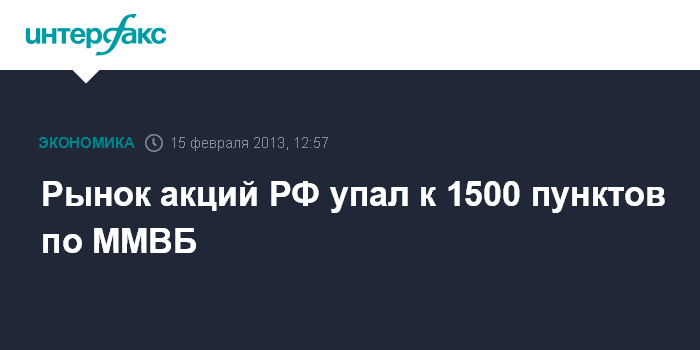 Москва. 15 февраля. INTERFAX.RU - Рынок акций РФ днем в пятницу под давлением распродаж по всему спектру blue chips на внешнем негативе упал до уровня поддержки 1500 пунктов по индексу ММВБ - минимума с начала года.