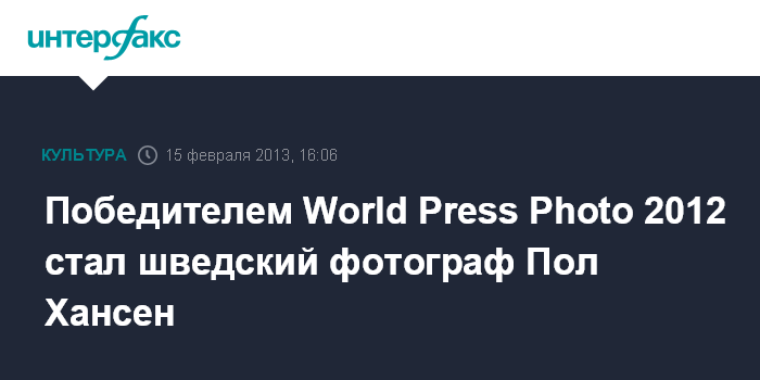 Амстердам. 15 февраля. INTERFAX.RU - Работа шведского фотографа Пола Хансена признана лучшей на престижном конкурсе фотожурналистики World Press Photo-2012, сообщает агентство AP.