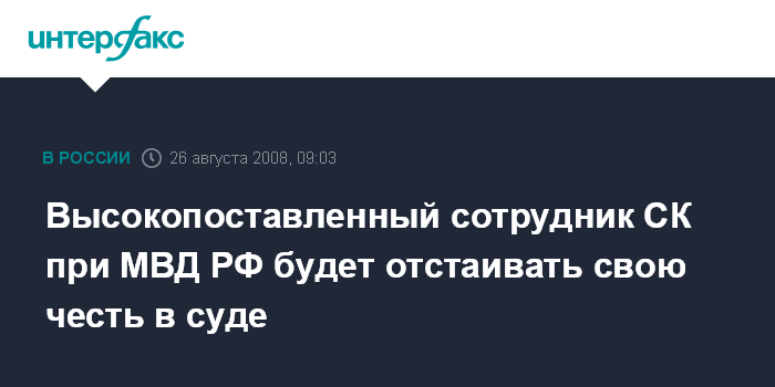 Высокопоставленный сотрудник СК при МВД РФ будет отстаивать свою честь в суде