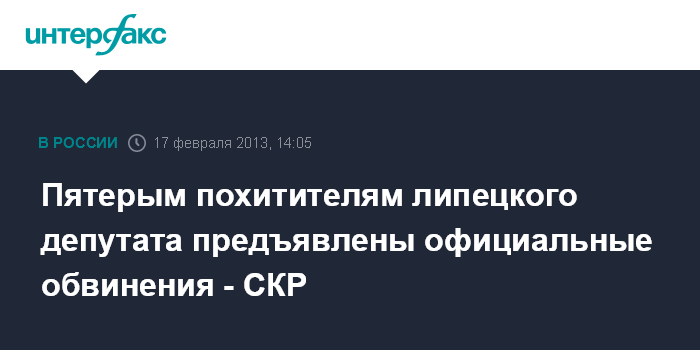 Пятерым похитителям липецкого депутата предъявлены официальные обвинения - СКР