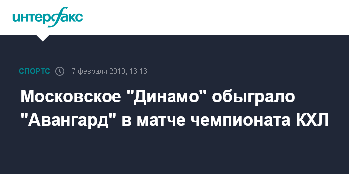 Москва. 17 февраля. INTERFAX.RU - В матче заключительного тура регулярного чемпионата Континентальной хоккейной лиги (КХЛ) сезона-2012/13 омский "Авангард" на своем льду уступил московскому "Динамо", сообщает "Спорт-Экспресс". В итоговом протоколе зафиксировано поражение "Авангарда" со счетом 0:3 (0:0, 0:1, 0:2).