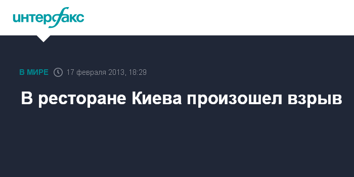Киев. 17 февраля. INTERFAX.RU - В ресторане "Апрель" в центре Киева произошел взрыв газового баллона, после чего вспыхнул пожар, госпитализированы пятеро работников заведения.
