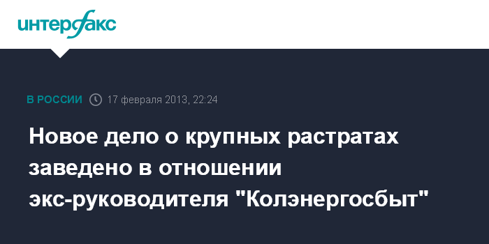 Новое дело о крупных растратах заведено в отношении экс-руководителя "Колэнергосбыт"