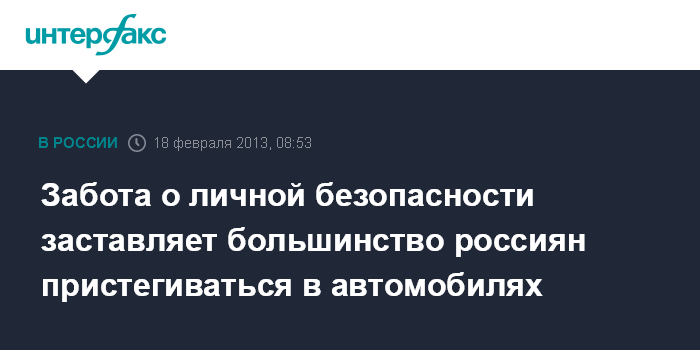 Забота о личной безопасности заставляет большинство россиян пристегиваться в автомобилях