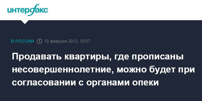 "Правительство РФ, как сообщается на его сайте, рассмотрит в ближайшее время изменение в п. 4 ст. 292 Гражданского кодекса (ГК), обязывающее получать разрешение органов опеки при продаже жилья, где прописаны несовершеннолетние", - отмечает издание.