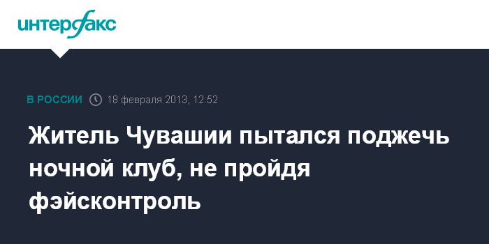 Чебоксары. 18 февраля. INTERFAX.RU - В Чувашии возбуждено уголовное дело в отношении 27-летнего жителя Новочебоксарска, который в минувшую субботу пытался поджечь ночной клуб, где находились почти 600 посетителей.