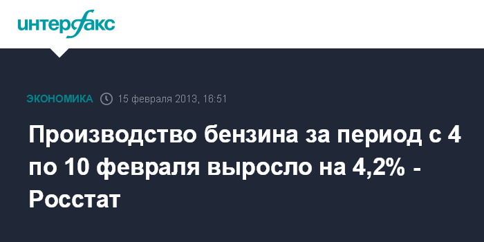 Производство бензина за период с 4 по 10 февраля выросло на 4,2% - Росстат