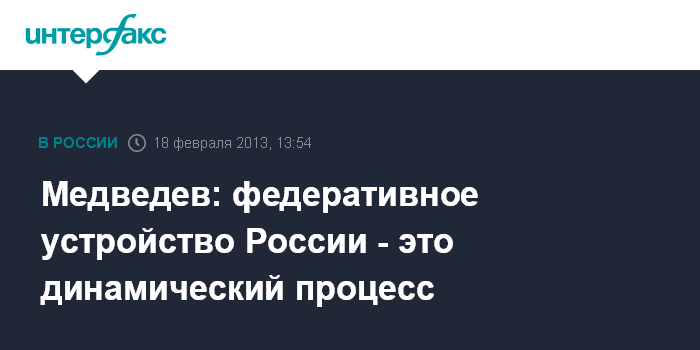 Москва. 18 февраля. INTERFAX.RU - Федеративное устройство России не представляет собой статическую конструкцию, заявил премьер-министр РФ Дмитрий Медведев.