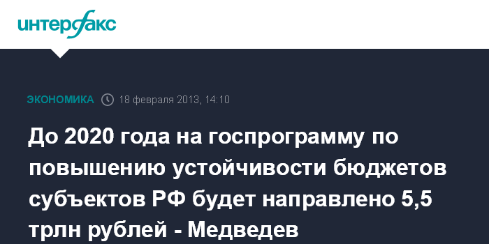 До 2020 года на госпрограмму по повышению устойчивости бюджетов субъектов РФ будет направлено 5,5 трлн рублей - Медведев