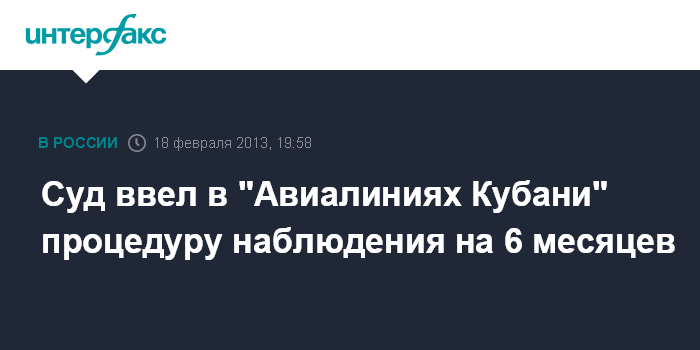 Краснодар. 18 февраля. INTERFAX.RU - Арбитражный суд Краснодарского края в понедельник ввел процедуру наблюдения в ОАО "Авиационные линии Кубани", сообщил корреспондент "Интерфакса", присутствовавший на заседании.