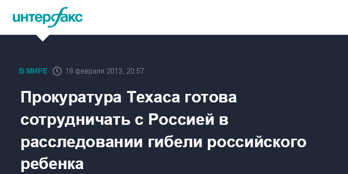 Прокуратура Техаса готова сотрудничать с Россией в расследовании гибели российского ребенка