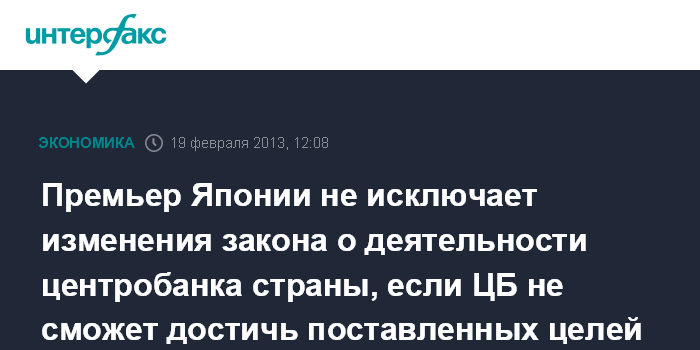 Премьер Японии не исключает изменения закона о деятельности центробанка страны, если ЦБ не сможет достичь поставленных целей