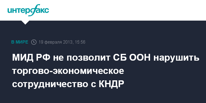 МИД РФ не позволит СБ ООН нарушить торгово-экономическое сотрудничество с КНДР