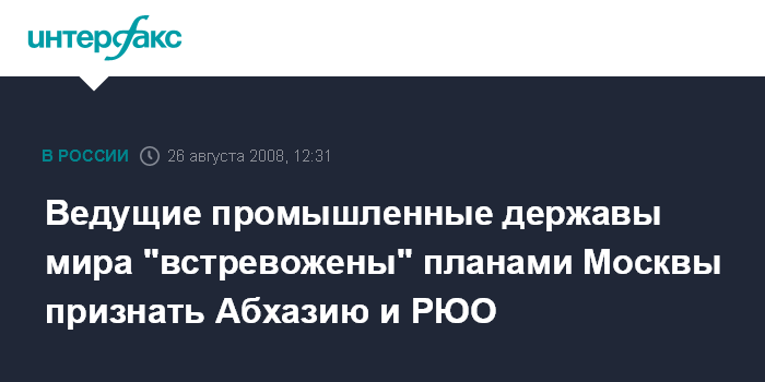 Ведущие промышленные державы мира "встревожены" планами Москвы признать Абхазию и РЮО
