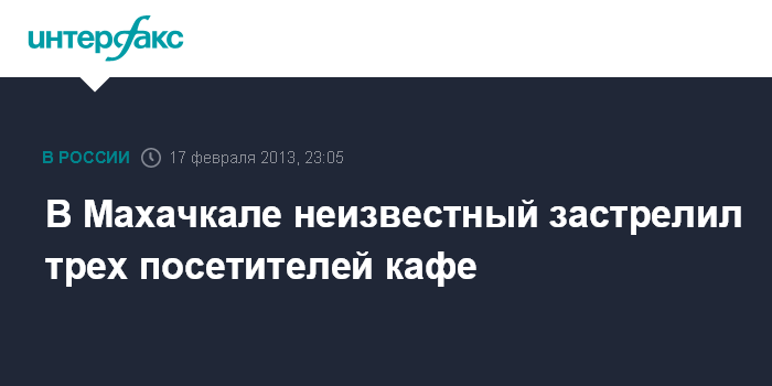 Махачкала. 17 февраля. ИНТЕРФАКС-ЮГ - В результате нападения на посетителей кафе на окраине Махачкалы три человека убиты, сообщил "Интерфаксу" в воскресенье источник в правоохранительных органах Дагестана.