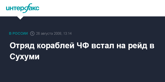 Москва. 26 августа. INTERFAX.RU - Группа кораблей Черноморского флота встала на рейд у города Сухуми в Абхазии, сообщил замначальника Генштаба российской армии генерал-полковник Анатолий Ноговицын.