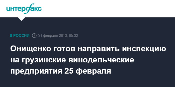 Онищенко готов направить инспекцию на грузинские винодельческие предприятия 25 февраля