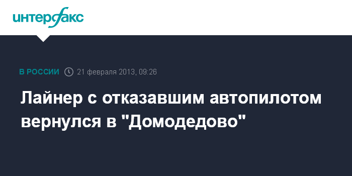 Лайнер с отказавшим автопилотом вернулся в "Домодедово"