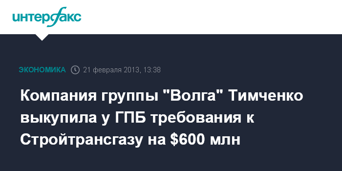 Компания группы "Волга" Тимченко выкупила у ГПБ требования к Стройтрансгазу на $600 млн