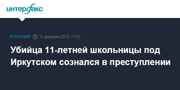 Иркутск. 21 февраля. INTERFAX.RU - Арестованный по обвинению в убийстве 11-летней Ульяны Алексеевой в Шелехове Иркутской области полностью признал свою вину, сообщил агентству "Интерфакс-Сибирь" старший помощник руководителя регионального управления СКР Владимир Саловаров.