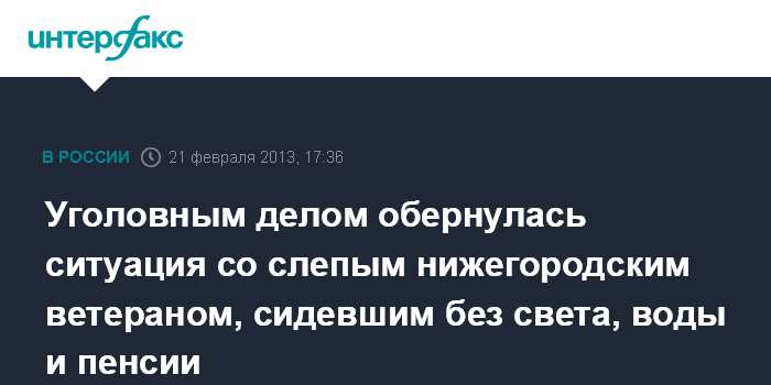 Уголовным делом обернулась ситуация со слепым нижегородским ветераном, сидевшим без света, воды и пенсии