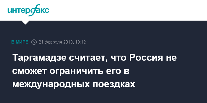Тбилиси. 21 февраля. INTERFAX.RU - Депутат парламента Грузии Гиви Таргамадзе, которого в четверг заочно арестовал российский суд, уверен, что сможет и дальше свободно ездить в различные страны.