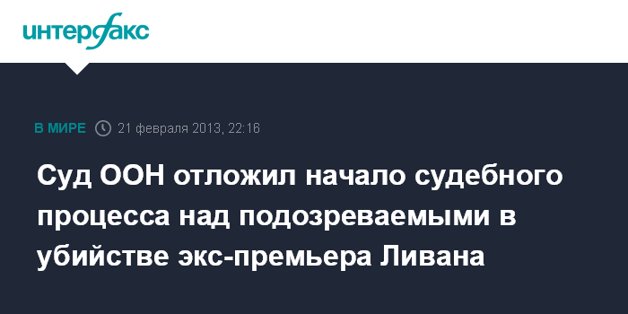 Амстердам. 21 февраля. INTERFAX.RU - Специальный трибунал ООН по Ливану отложил на неопределенный срок начало заочного судебного процесса над членами ливанского шиитского радикального движения "Хезболла", обвиняемыми в убийстве бывшего премьер-министра страны Рафика Харири.