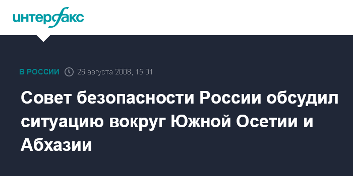 Москва. 26 августа. INTERFAX.RU - Совет безопасности РФ обсудил ситуацию вокруг Южной Осетии и Абхазии, сообщила пресс-секретарь президента РФ Наталья Тимакова.