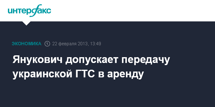 Киев. 22 февраля. INTERFAX.RU - Президент Украины Виктор Янукович допускает, что украинская газотранспортная система будет сдана в аренду.